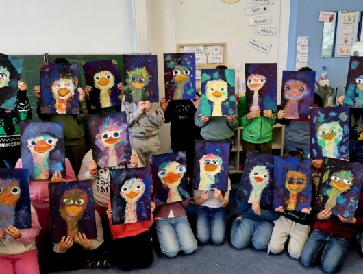 Unter dem Motto „Alles ist miteinander verbunden – und jedes Handeln hinterlässt Spuren“ gestaltete die Klasse 3a der Grund- und Mittelschule Aitrachtal ein fächerübergreifendes Projekt aus Kunst- und Deutschunterricht, das in einer Vernissage seinen Abschluss fand. Im Kunstunterricht entstanden – inspiriert von den Arbeiten der Künstlerin Manuela Rathje – ausdrucksstarke Straußenporträts. Parallel dazu setzten sich die Schülerinnen […]