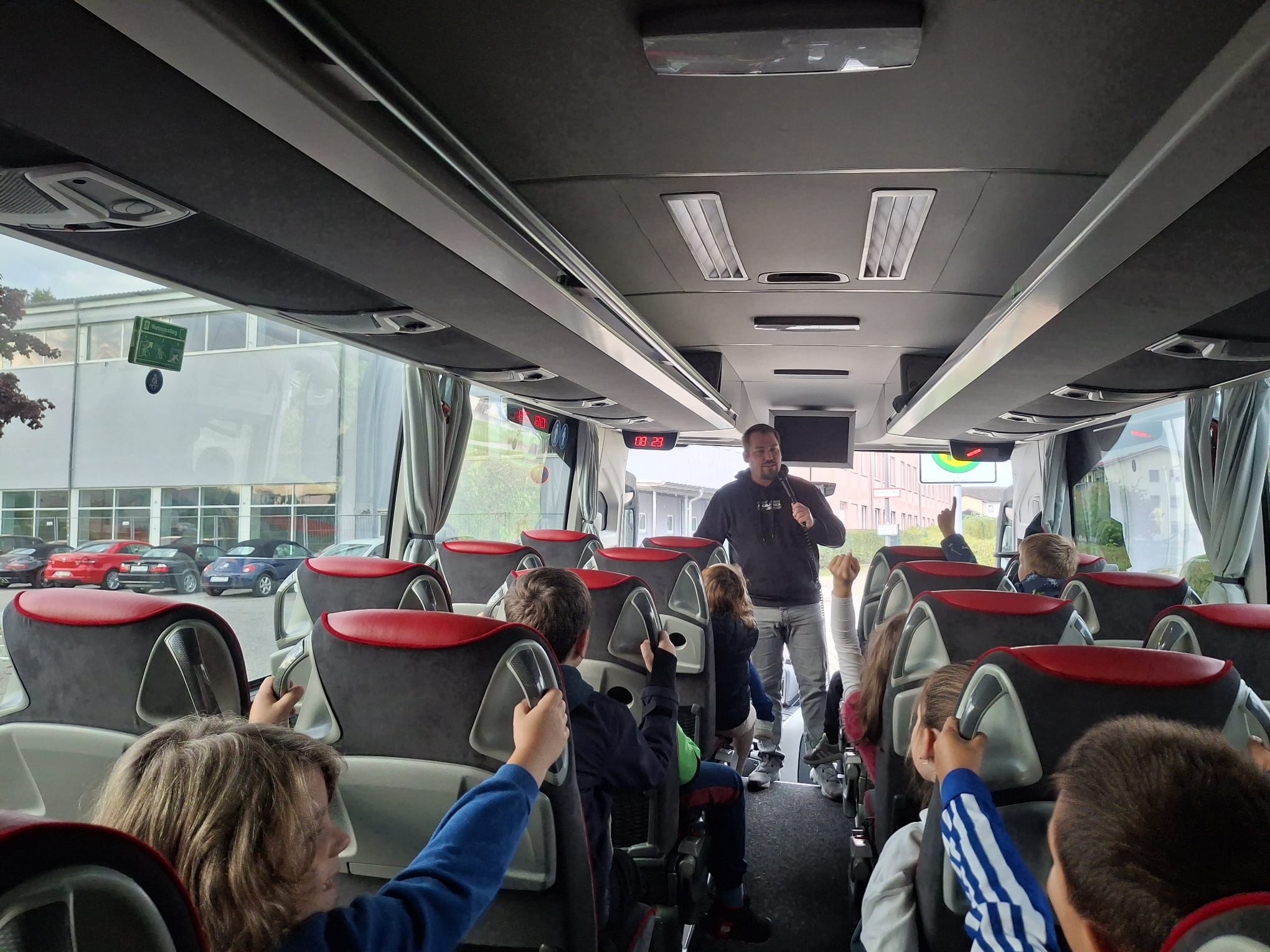 Ein Höhepunkt war die Durchführung einer Vollbremsung. So spürten die Kinder am eigenen Körper, warum Anschnallen im Bus unverzichtbar ist und wie plötzlich ein Bus zum Stillstand kommen kann.