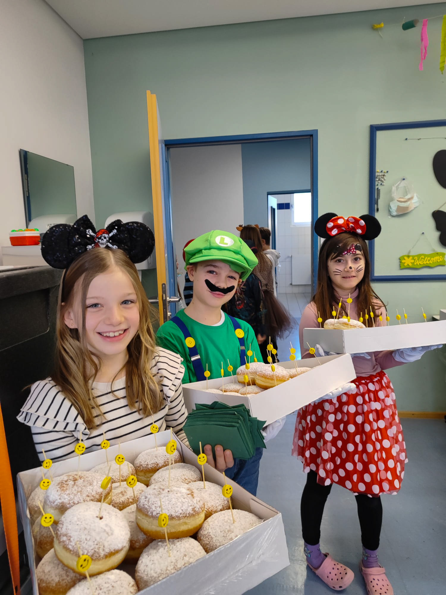 Bewegung macht hungrig – und so konnte sich die maskierte Schulfamilie in diesem Jahr auch erstmals auf Faschingskrapfen stürzen.